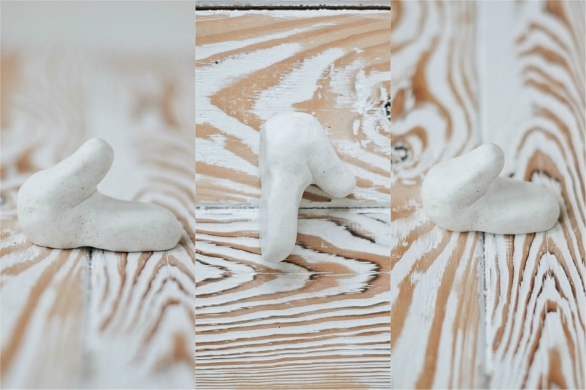 7. Белая пластика имеет свойство пачкаться в процессе лепки, поэтому после запекания заготовку лучше покрасить акрилом и даже нанести несколько акцентов светло-серой или светло-коричневой краской в тон сердечка.