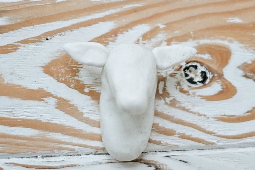 2. Пока краска сохнет, лепим голову оленя из полимерной глины. Для этого я нашла примитивную картинку с головой оленя в Интернете и постаралась повторить ее форму. У меня не было опыта лепки чего-то сложнее шариков, но кажется получилось неплохо.